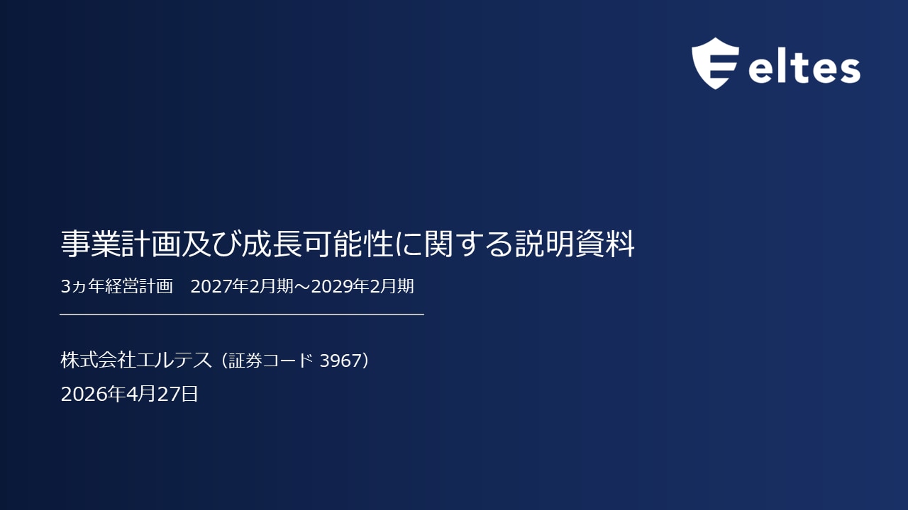 事業計画及び成長可能性に関する説明資料 3ヵ年経営計画(2027年2月期~2029年2月期)[PDF]を公開しました。