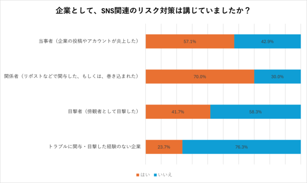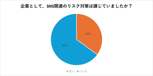 「企業として、SNS関連のリスク対策は講じていましたか?」という質問に対し、「はい」と回答した人は35%にとどまりました。