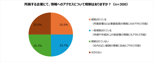 僅差ではあるものの、最多の回答は「規制されていない(社内の広い範囲の情報に自由にアクセス可能)」が25.3%となっています。