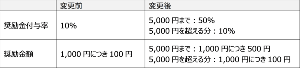 これまで一律10%としていた奨励金付与率を、月額拠出額5,000円までは50%、5,000円を超える分については、10%へと改定いたします。なお、2026年5月分の拠出より変更後の奨励金付与率が適用されます。