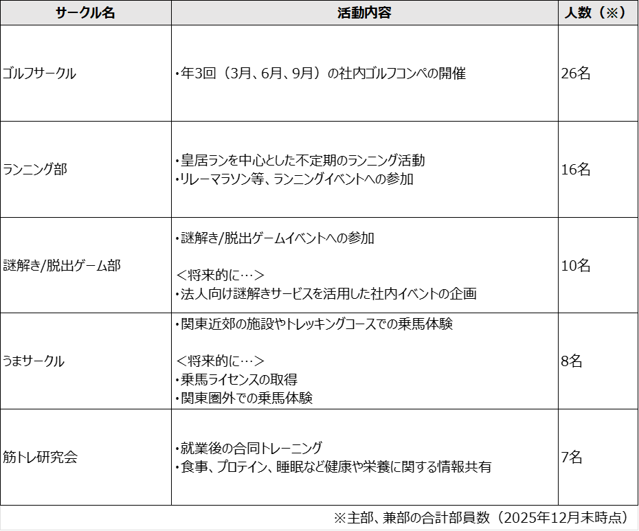 ――サークルに所属していない社員もいますが、人事として、サークル活動の位置付けはどのように考えていますか?